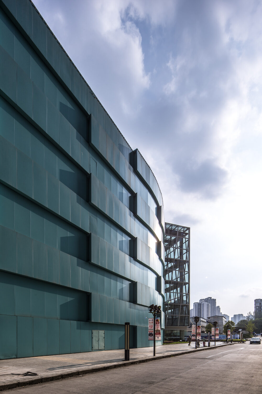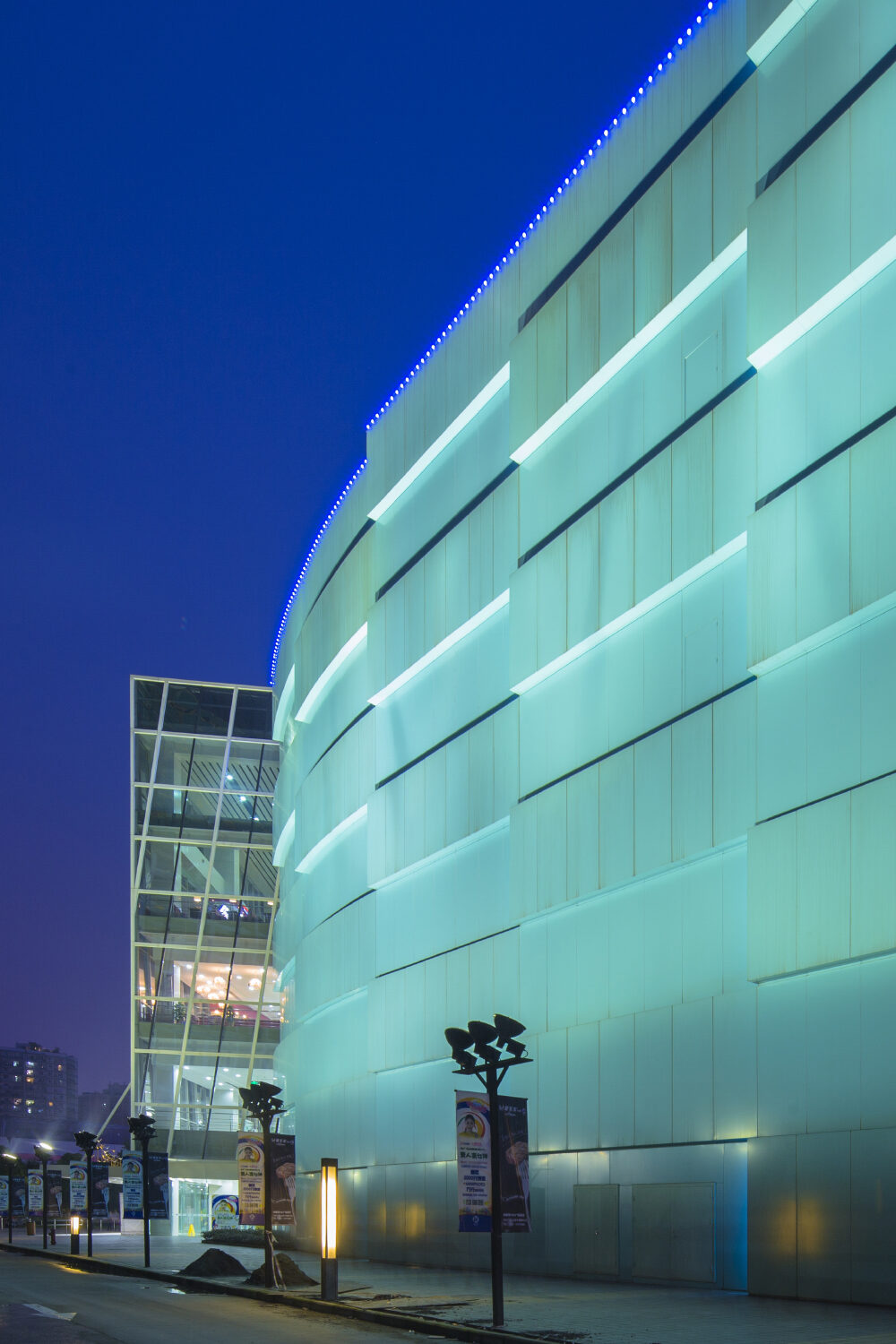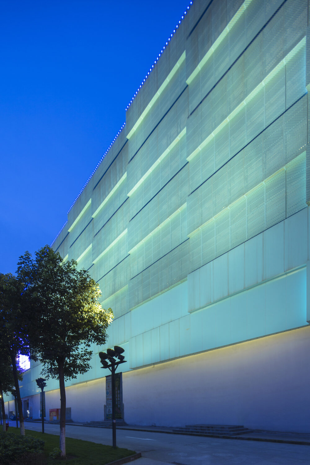 為了能適應(yīng)商業(yè)建筑布局的靈活性,項(xiàng)目采用了15x15米的超大柱距。平面由內(nèi)街串聯(lián)起各商業(yè)各部分,貫通上下中庭,使商業(yè)空間更趨流動(dòng)活躍。立面設(shè)計(jì)上采用了寶藍(lán)色穿孔鋁單板飾件,立體錯(cuò)位布置,形成了建筑優(yōu)美的肌理和韻律,突顯建筑所特有的個(gè)性和質(zhì)感。同時(shí),立體車庫的采用極大提高了車庫與商業(yè)的使用便利性。