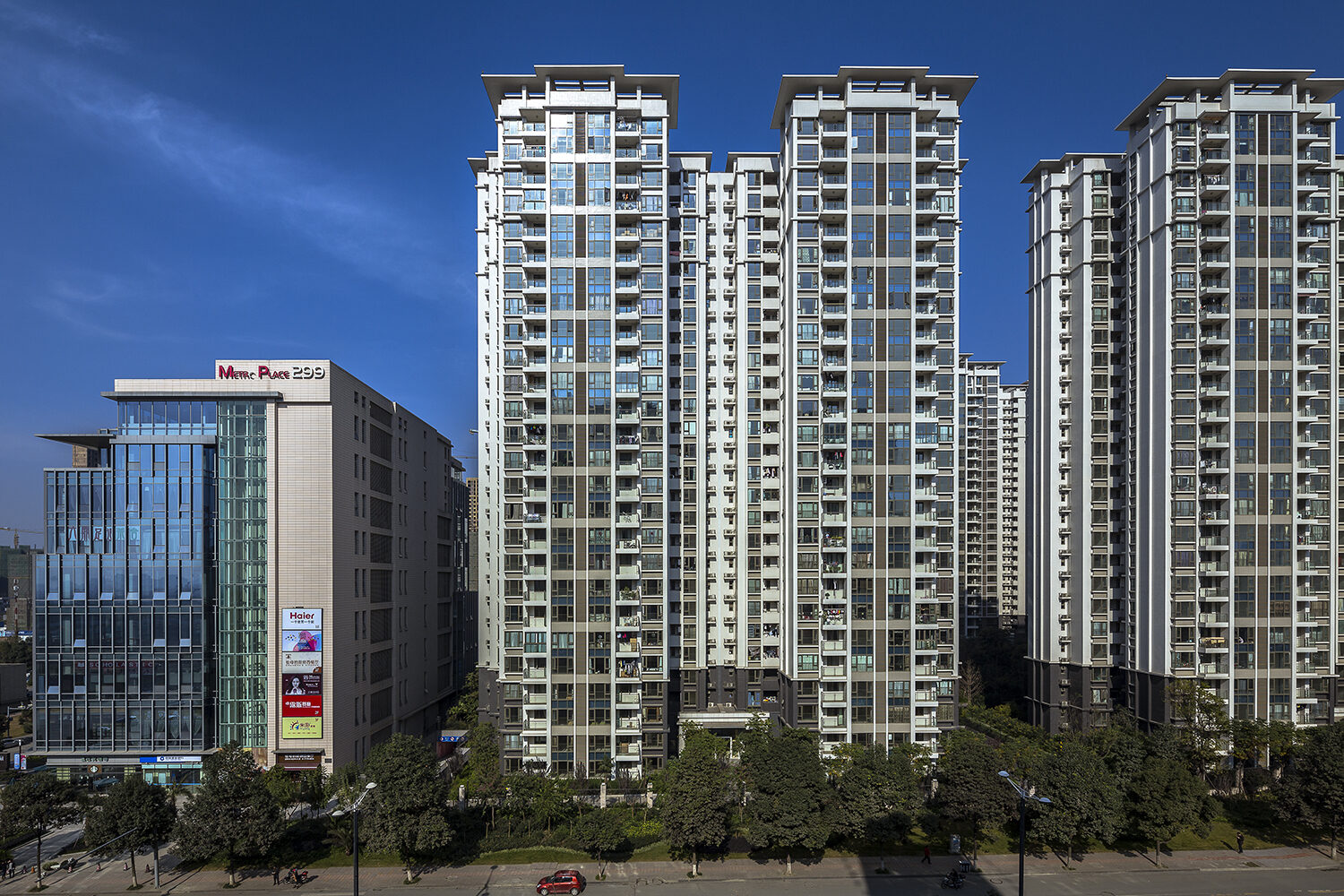 項目是香港嘉里建設在大陸西南地區(qū)開發(fā)的第一項目,其重要性不言而喻。前后歷經(jīng)四年打造。通過建筑體塊的騰挪、扭轉(zhuǎn)、組合,形成組團庭院及大尺度共享庭院,使各住宅單位均獲得良好采光和應景。地塊規(guī)劃設計,貼切場地長寬尺寸,橫平豎直,對仗工整,成熟端莊,頗具大宅風范。項目立面去繁就簡,抽枝去葉,造型設計尊從建筑本身比例與構成,不作過多裝扮,僅于塔樓頂部處理幾處飄板以體現(xiàn)天際輪廓之豐富。整體調(diào)子以淺色示人,注意處理好鋪磚方式的微妙變化及合理排列,順應陰影關系和轉(zhuǎn)折處的規(guī)律略做變化,使建筑形象雅致,溫潤,卓然不群。