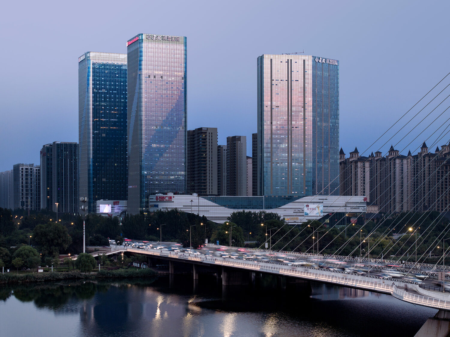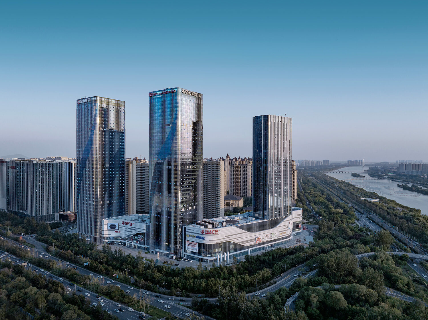 項目位于太原人文歷史軸線——汾河沿岸,同時被晉陽湖公園、祥云公園等六大生態(tài)公園環(huán)繞,是城市發(fā)展的核心地段。商務(wù)中心由三棟超高層寫字樓及商業(yè)裙房組成,多元復(fù)合業(yè)態(tài)集商業(yè)、辦公、酒店于一體,引入萬達廣場、希爾頓酒店等知名商業(yè)、酒店品牌。