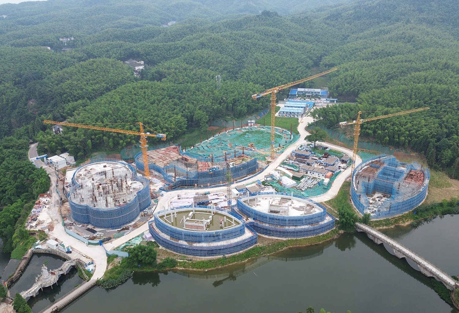 項(xiàng)目團(tuán)隊(duì)提出以竹為核心的新東方自然主義的設(shè)計(jì)理念,充分研究當(dāng)?shù)氐纳剿羌?、植被群落、民俗村落肌理等自然風(fēng)貌,修復(fù)、提升環(huán)境品質(zhì),激發(fā)場(chǎng)所價(jià)值,展現(xiàn)竹林豐茂、柔美的自然特征。以輕介入的方式,將豐富的活動(dòng)空間嵌入自然元素中,建筑群體分合有致,與自然和諧共生,打造竹水交融的大地景觀。