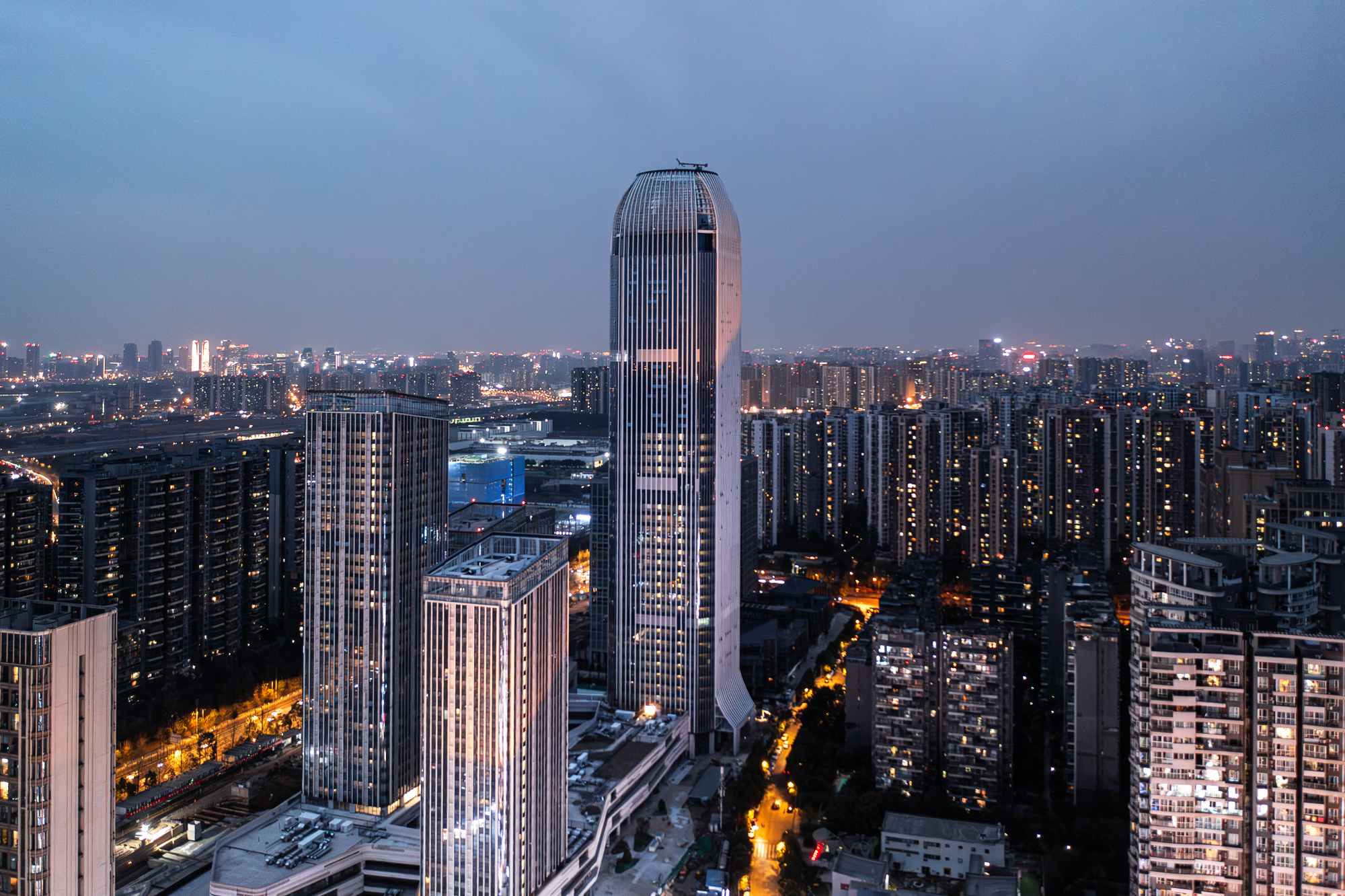 項(xiàng)目建設(shè)用地位于成都市三環(huán)外東南方,驛都大道與成龍大道之間的東部發(fā)展片區(qū)——成都重要的旅游休閑地塊三圣鄉(xiāng)片區(qū),隸屬于成都市錦江區(qū),用地性質(zhì)為商業(yè)服務(wù)業(yè)設(shè)施用地。項(xiàng)目用地位于錦江區(qū)東洪路以東、梔子街以南、喜樹街以西、成龍大道以北。場(chǎng)址地理位置優(yōu)越,交通便利,水、電、路、通訊等配套基礎(chǔ)設(shè)施較為齊全,建設(shè)條件齊備。項(xiàng)目包括超高層辦公和多層街區(qū),總建筑面積237,900平方米,其中地上184,192平方米,兩層地下室,超高層塔樓共計(jì)60層,建筑高度258.25米,多層街區(qū)包含媒體中心、展示中心和體驗(yàn)中心等,共計(jì)4層,建筑高度20.65米。項(xiàng)目各個(gè)功能區(qū)通過立體連廊相互聯(lián)系,有效對(duì)接。